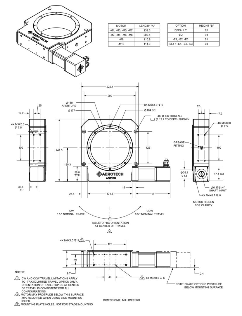 - Other motor options are available upon request. Contact Aerotech for more information.