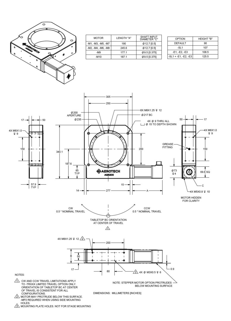 - AGR stages configured with direct rotary feedback require calibration and therefore must include the -PL2 metrology option.
