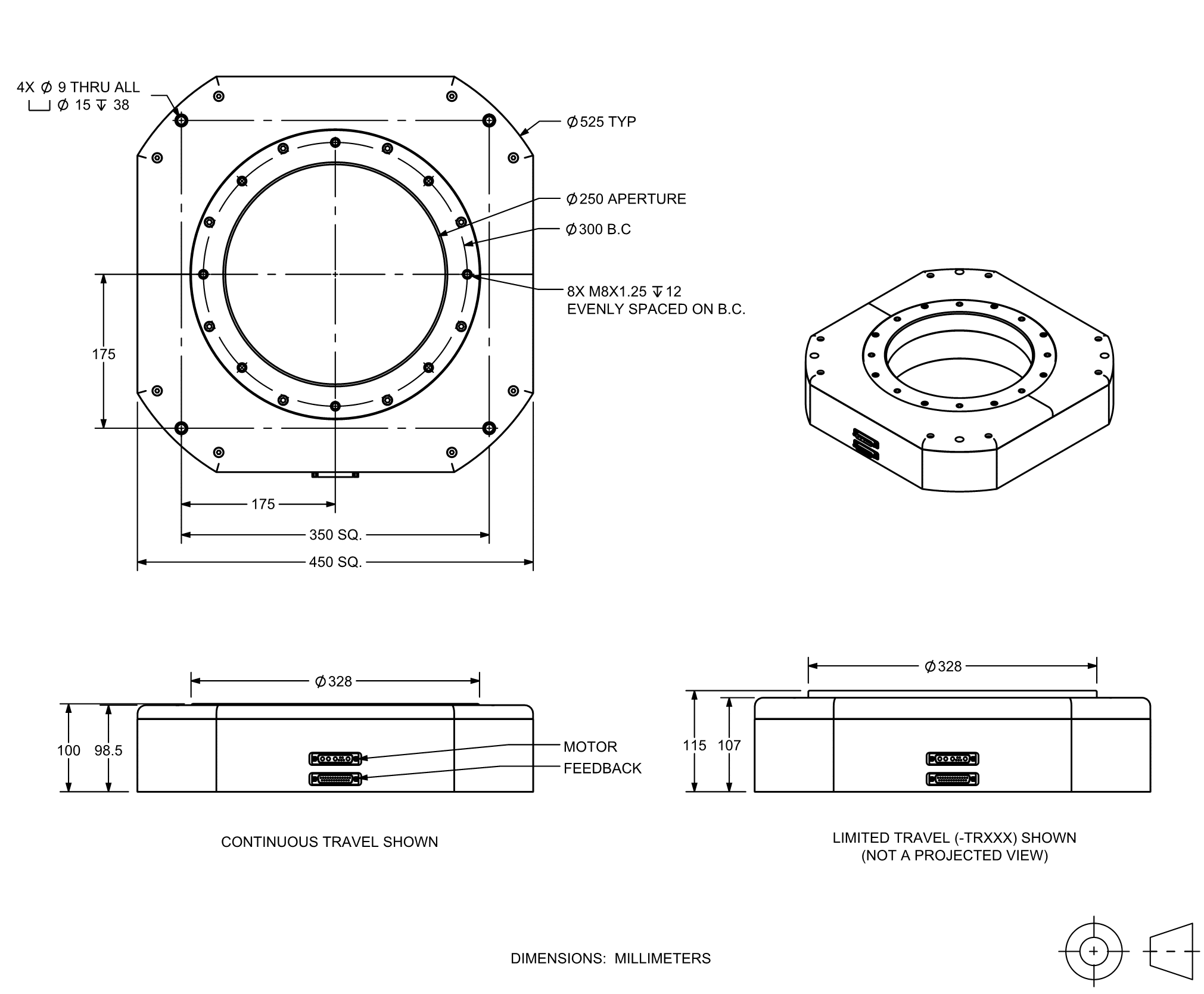 | ALAR250LP | Mechanical-bearing, direct-drive rotary stage, low profile, 250 mm aperture |