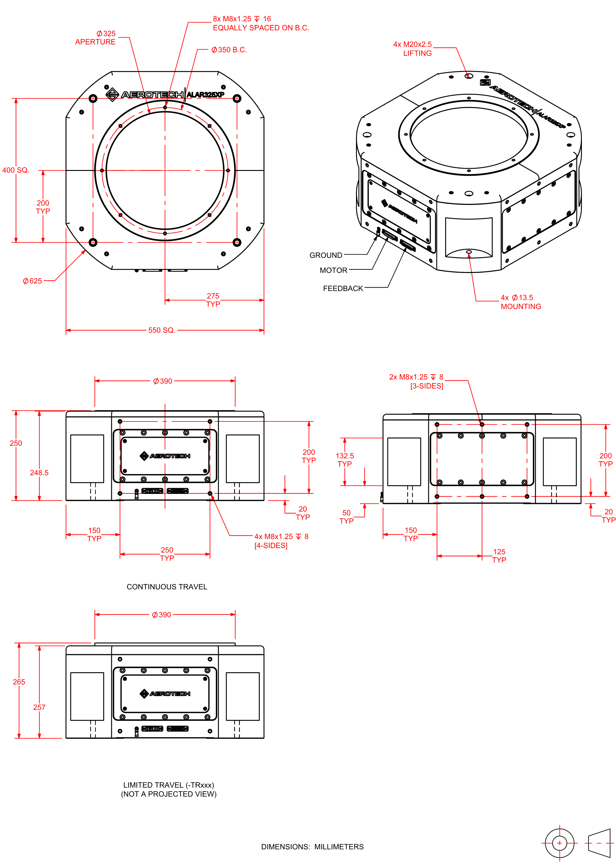 | ALAR250XP | Mechanical-bearing, direct-drive rotary stage, high torque, 250 mm aperture |