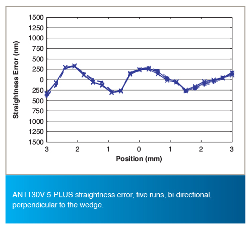 All of the original ANT series’ direct-drive advantages have been preserved in the ANT130V-5 family. Only noncontact direct-drive technology offers the robust, accurate and high-speed positioning necessary for mass production of precision devices. ANT130V-5 stages utilize advanced direct-drive technology pioneered by Aerotech to achieve the highest level of positioning performance. This direct-drive technology is high-performance, non-cogging, noncontact, high-speed, high-resolution and high-accuracy. This unique drive and bearing combination, packaged in an extremely small-profile and footprint, offers tangible advantages in many applications such as high-precision positioning, disk-drive fabrication, fiber alignment, optical delay element actuation, sensor testing and scanning processes that demand smooth and precise motion.