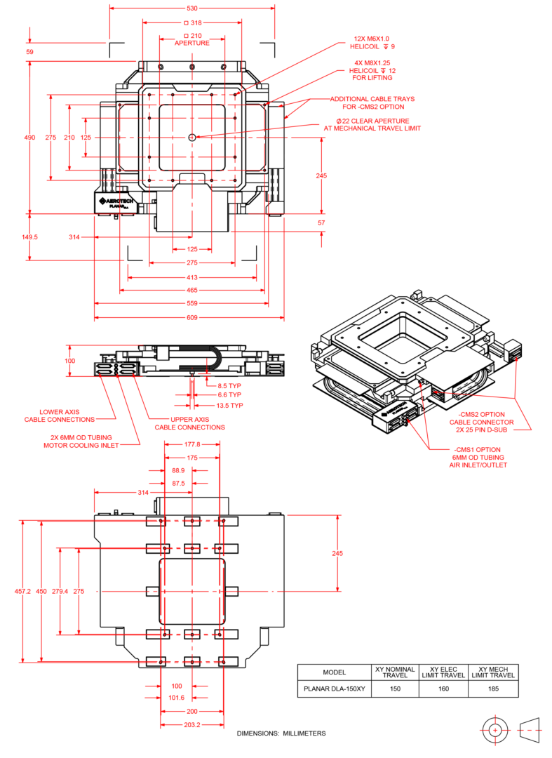 | PlanarDLA-150XY | Linear motor XY table w/clear aperture; 150 mm x 150 mm travel |