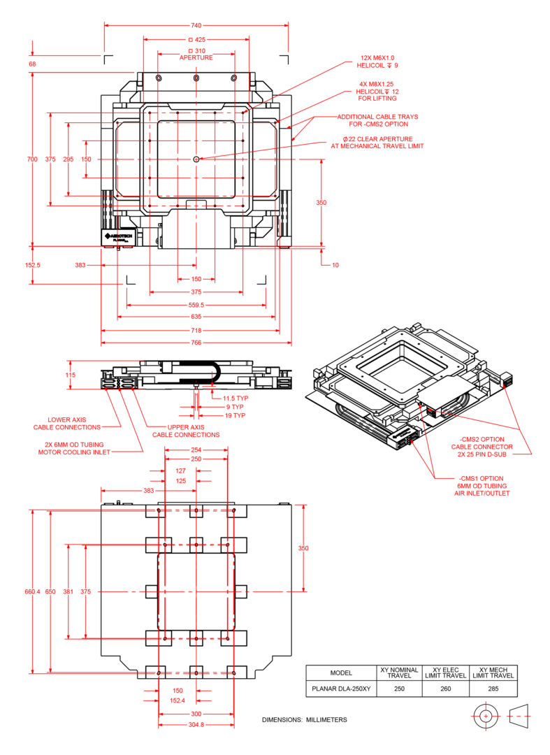 | PlanarDLA-250XY | Linear motor XY table w/clear aperture; 250 mm x 250 mm travel |