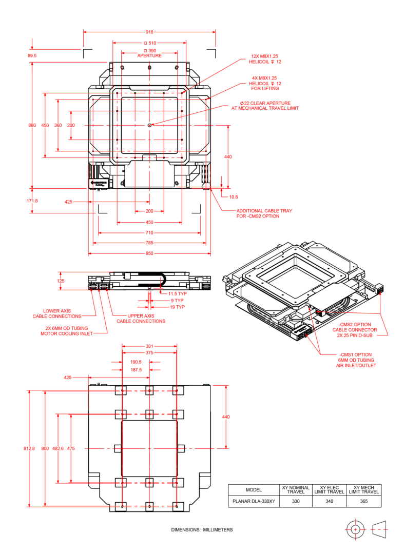 | PlanarDLA-330XY | Linear motor XY table w/clear aperture; 330 mm x 330 mm travel |